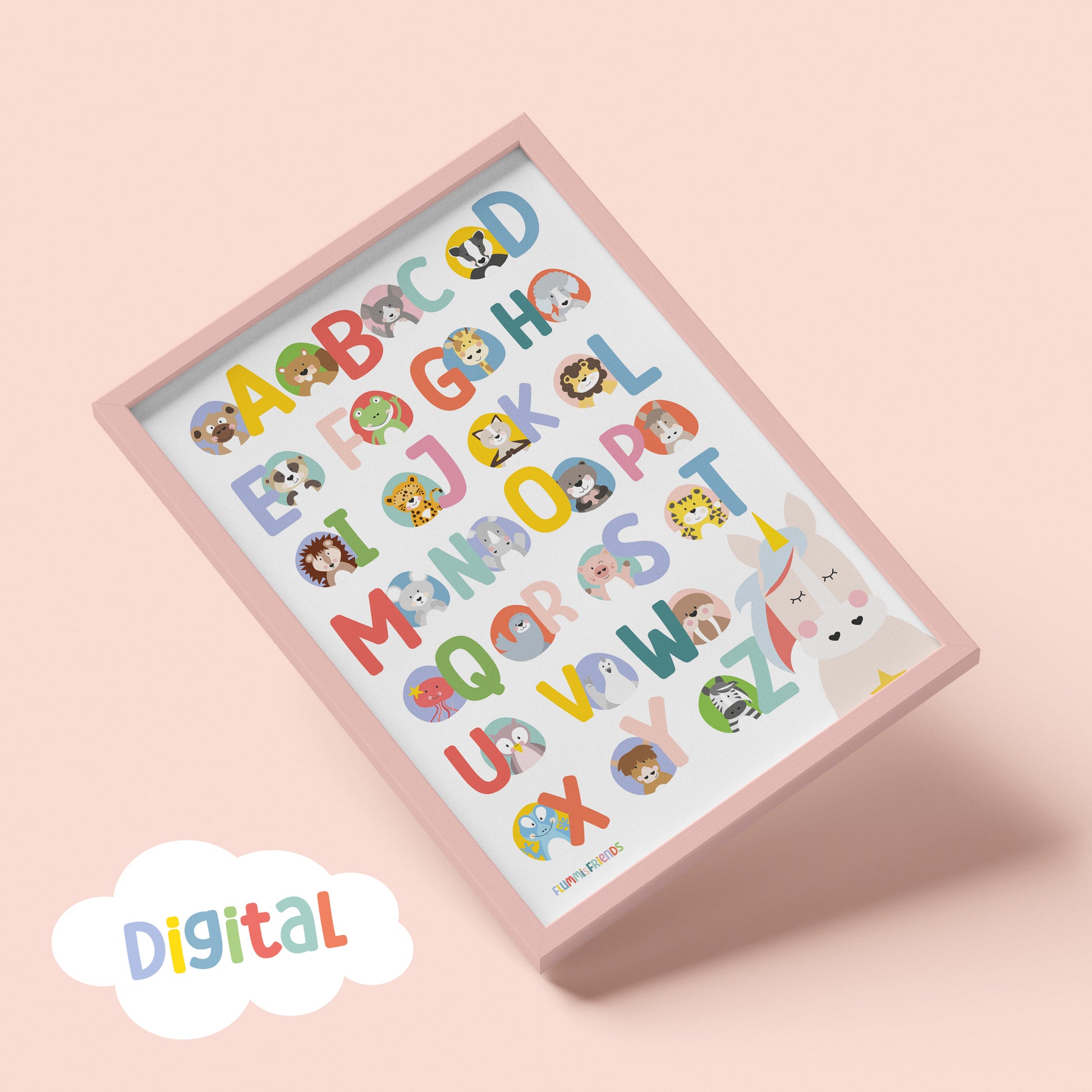 Dieses liebevoll gestaltete ABC-Poster im Hochformat unterstützt dein Kind dabei, Buchstaben auf kreative Weise zu entdecken – mit fröhlichen Tiermotiven, die Freude und Neugier wecken.